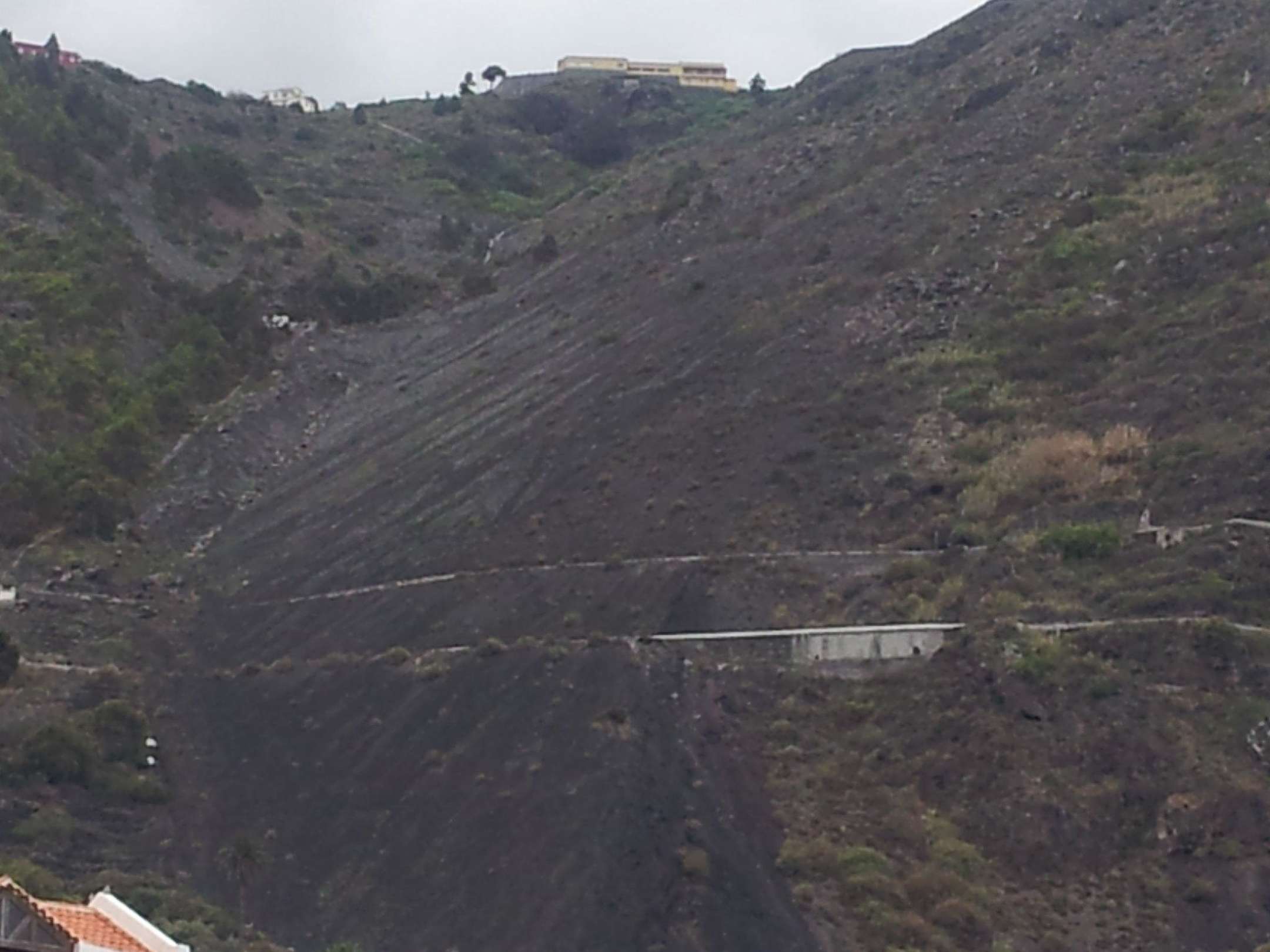 Lava fluß von Vulkan zur Ortschaft