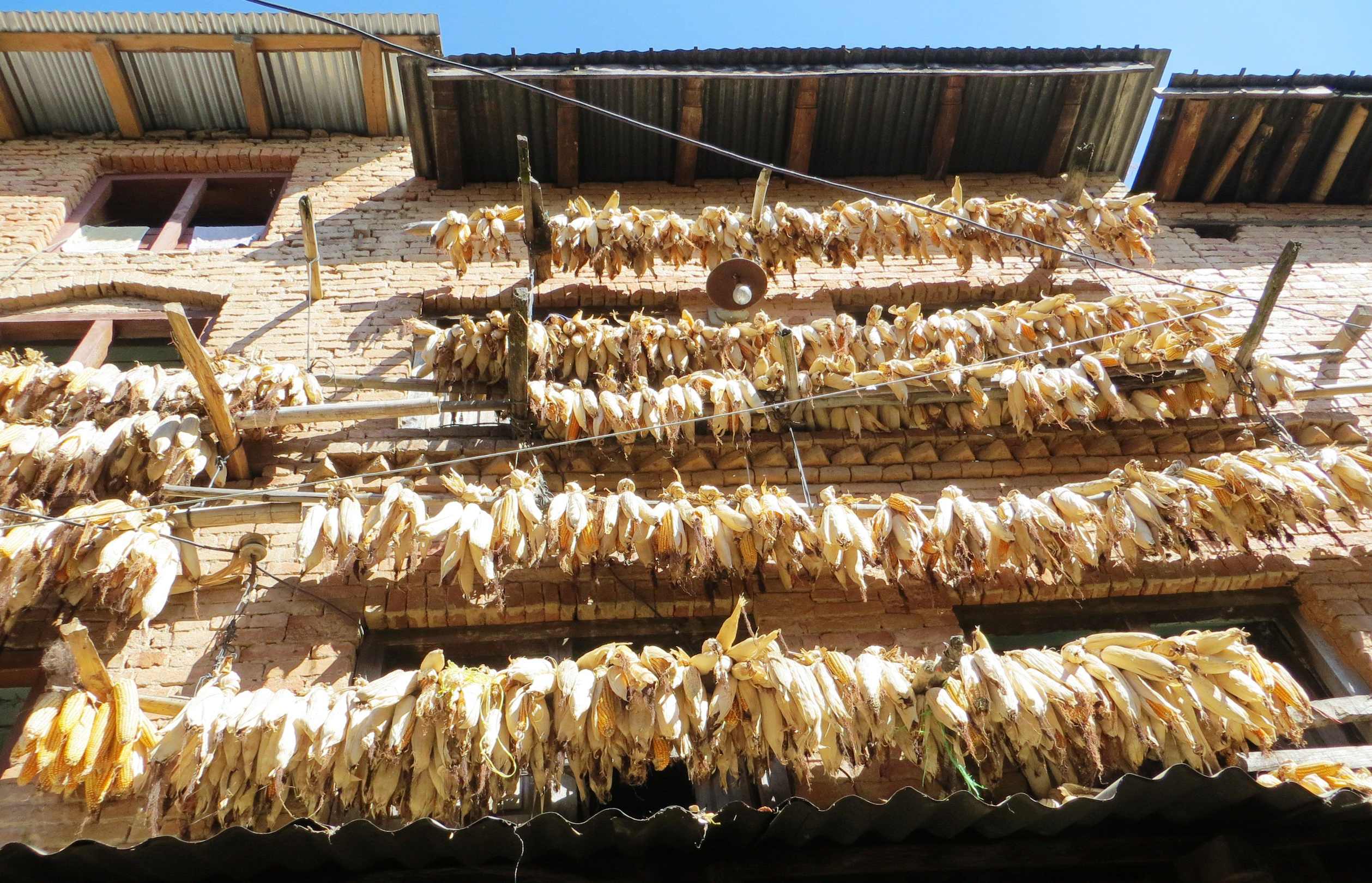 Mais hängt an den Häuserwänden