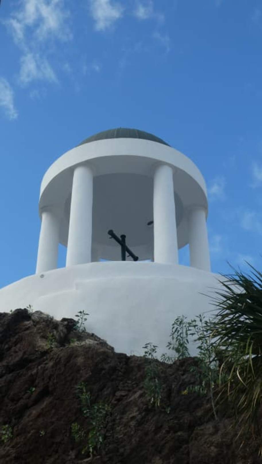 Weißer Pavillon auf dem Vulkanfelsen