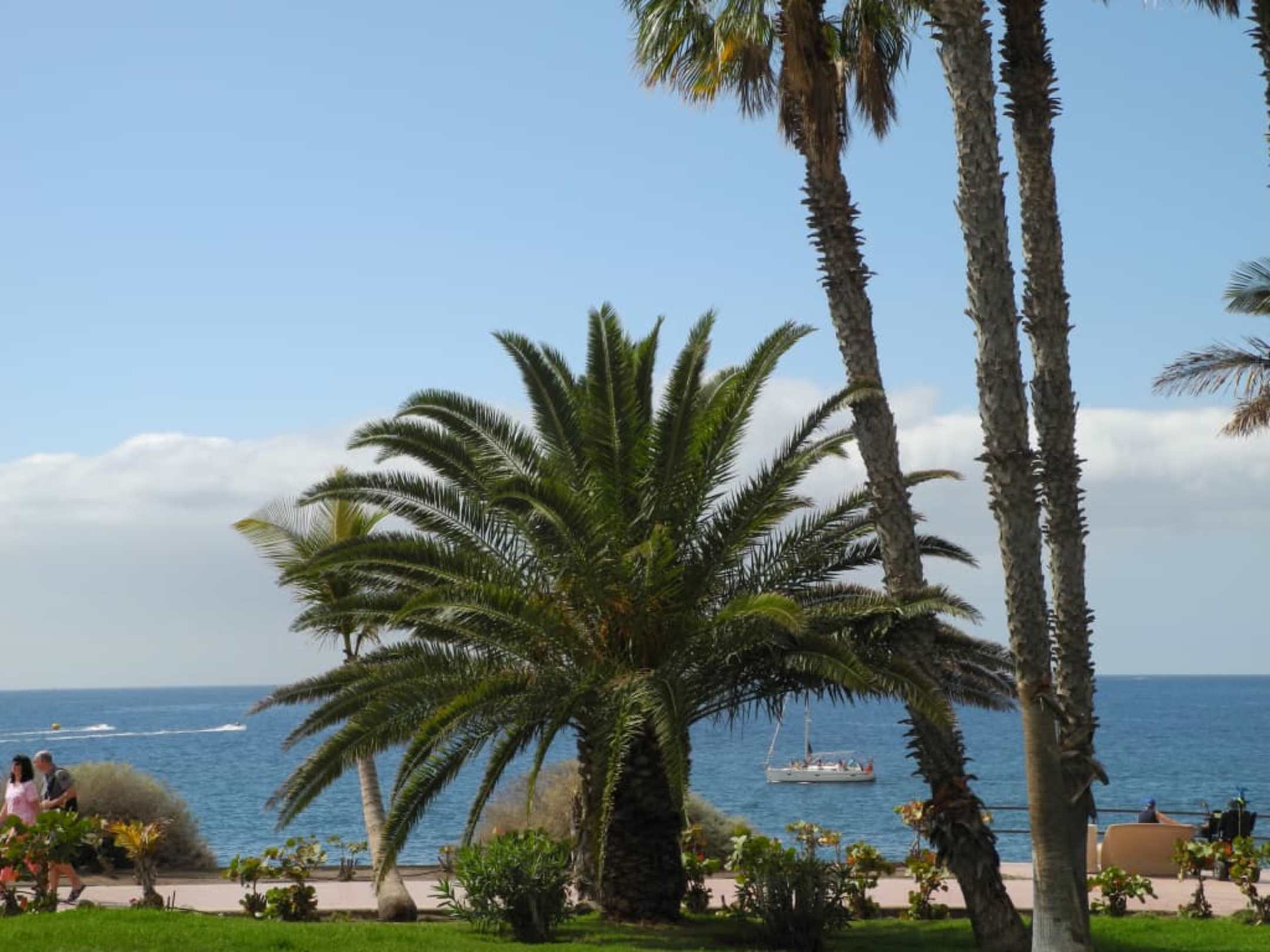 Aussicht aufs Meer mit Bänken