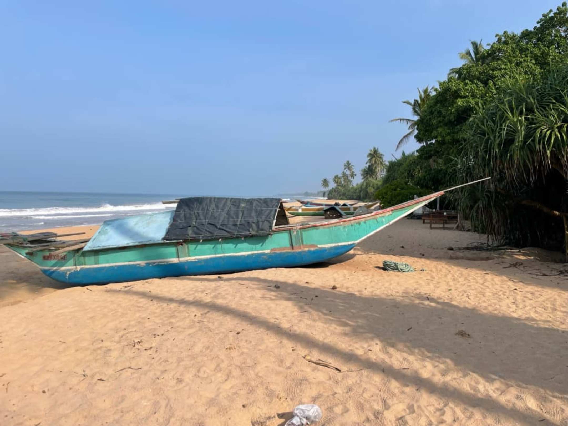 Fischerboot am Strand von Sri Lanka