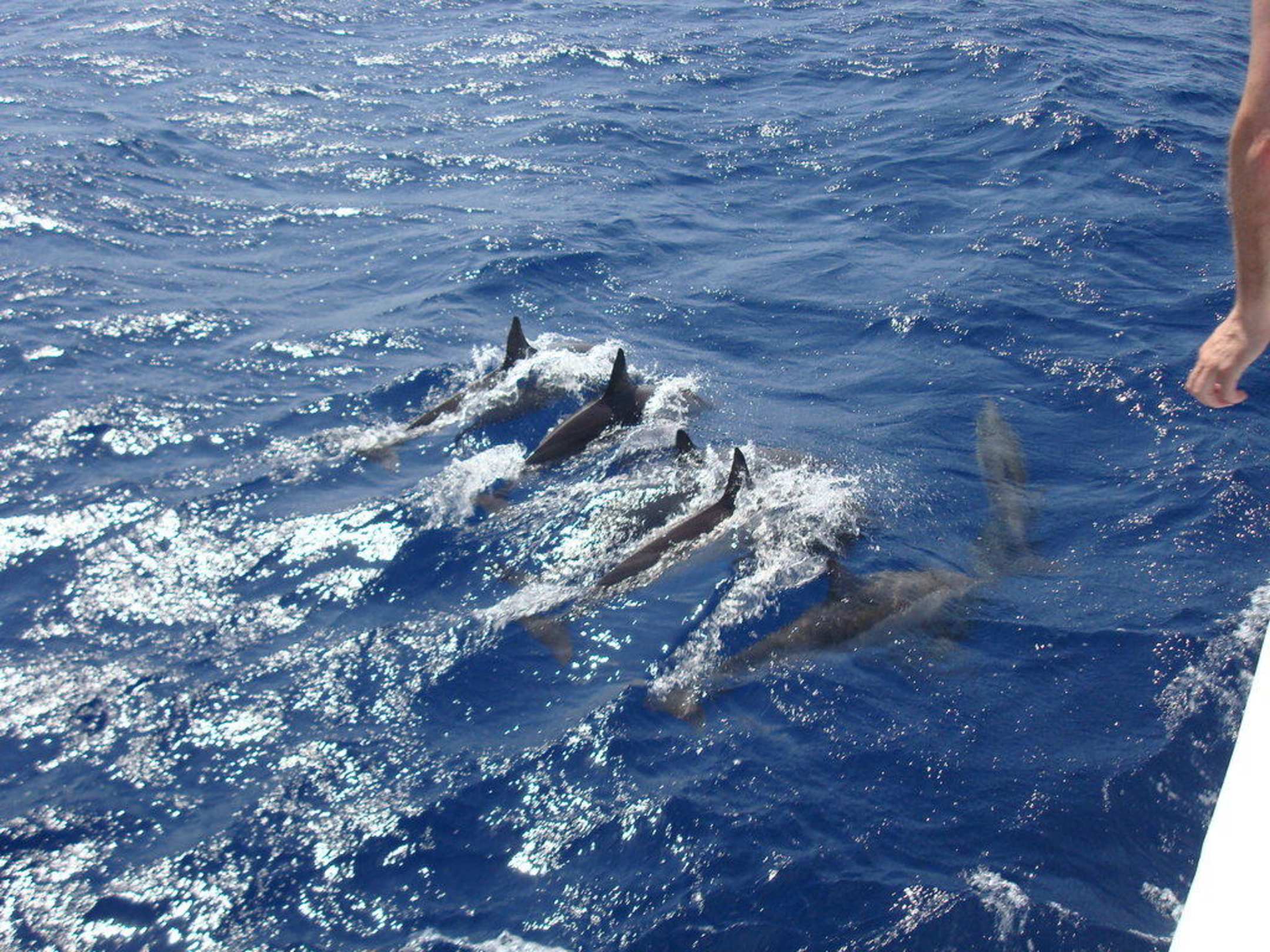 Delphine neben dem Boot