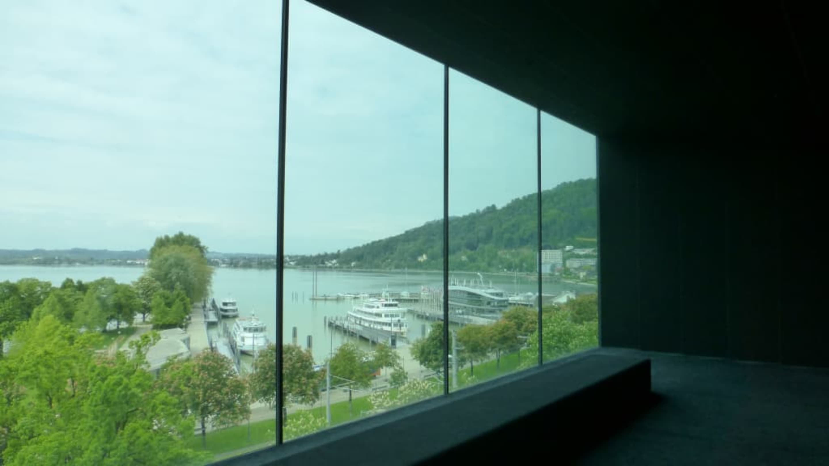 Blick durch das Panoramafenster zum Bodensee usw.