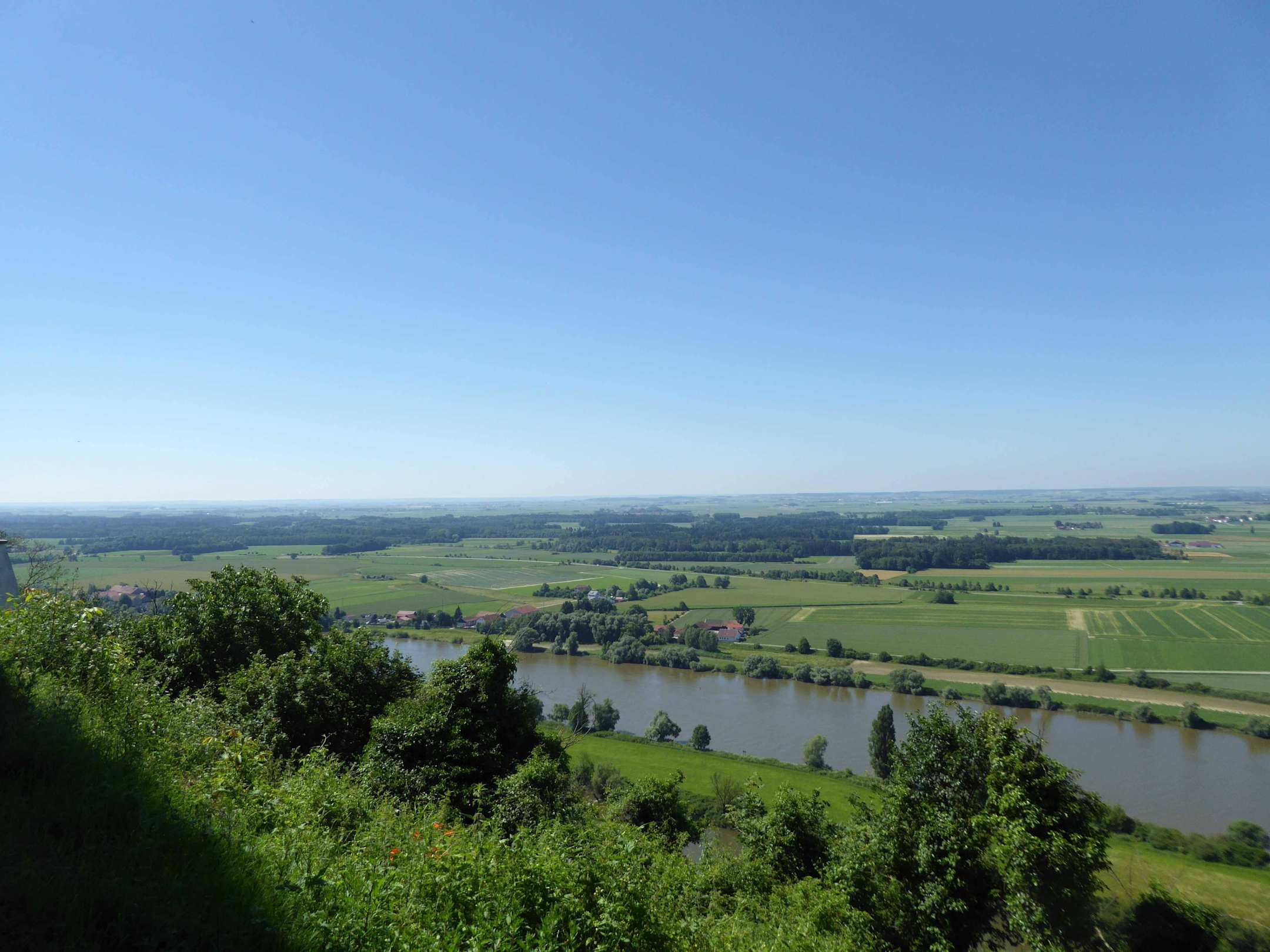 Richtung Süden in die Alpen, im Vordergrund Donau