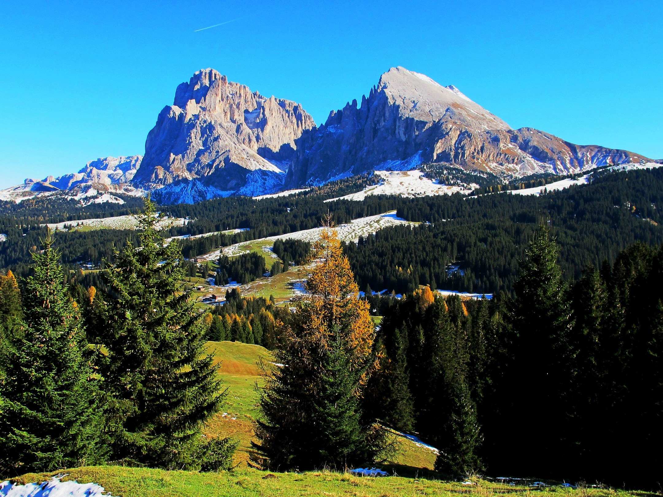 Seiseralm mit Langkofel und Plattkofelkofel