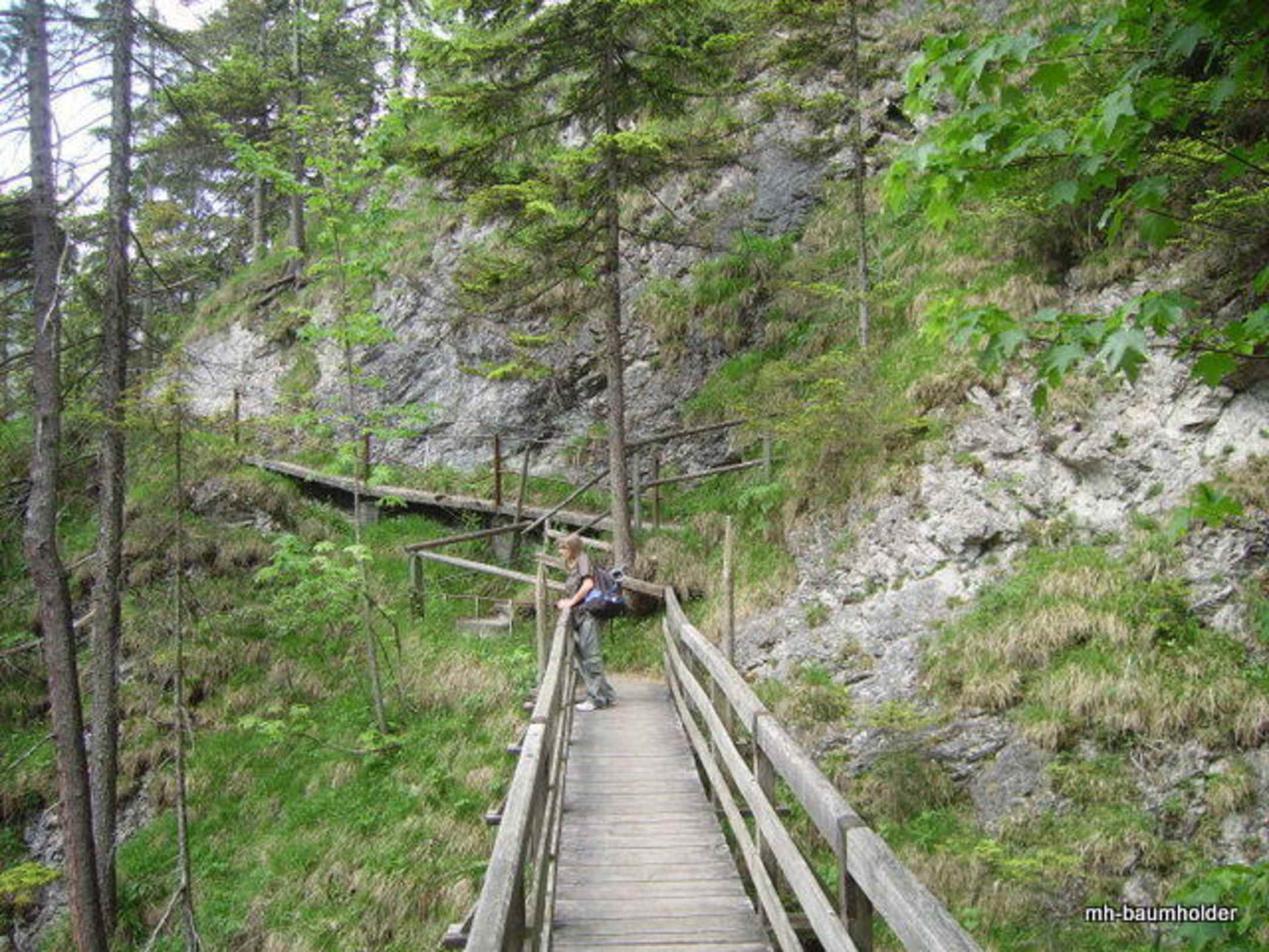 Blick über den Steg zum gut gesicherten Aufstieg