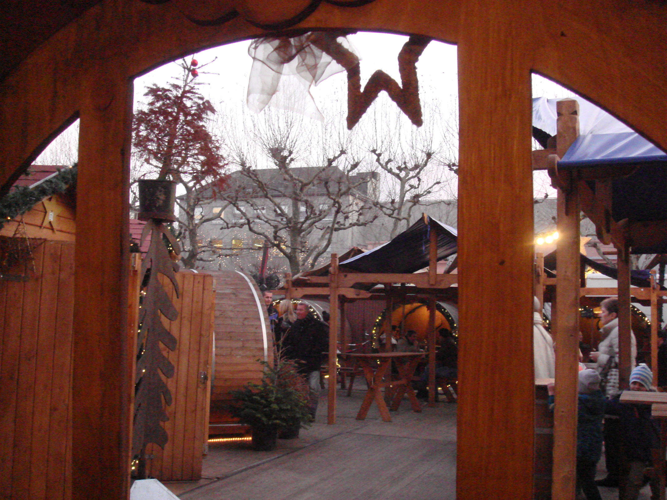 Blick vom Fass ins Weihnachtsdorf