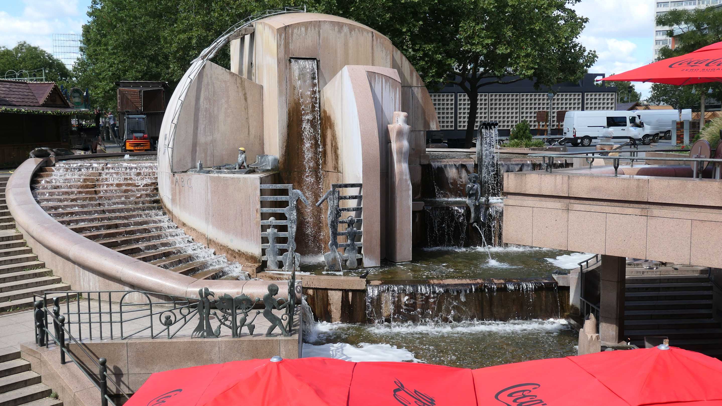 Beim 1983 errichteten Weltkugelbrunnen