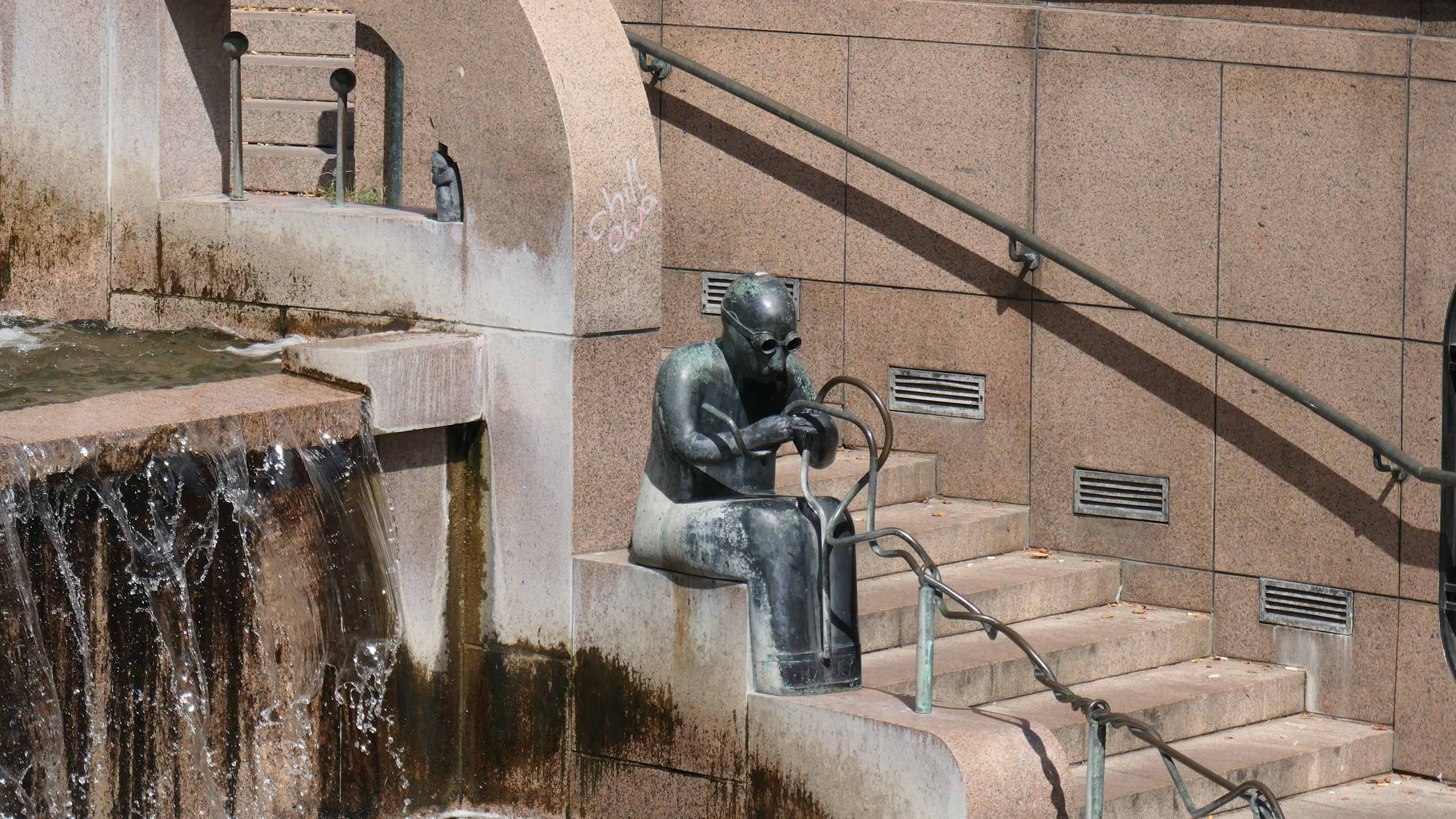 Beim 1983 errichteten Weltkugelbrunnen