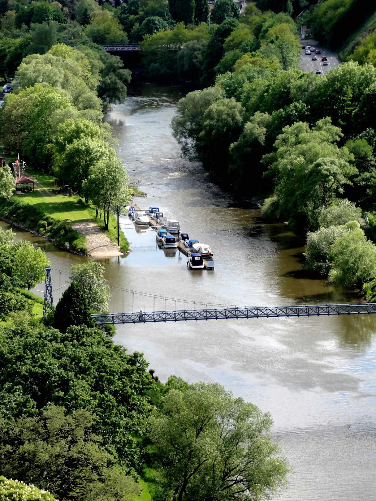 Blick auf die Fuldaarme und die Hängebrücke