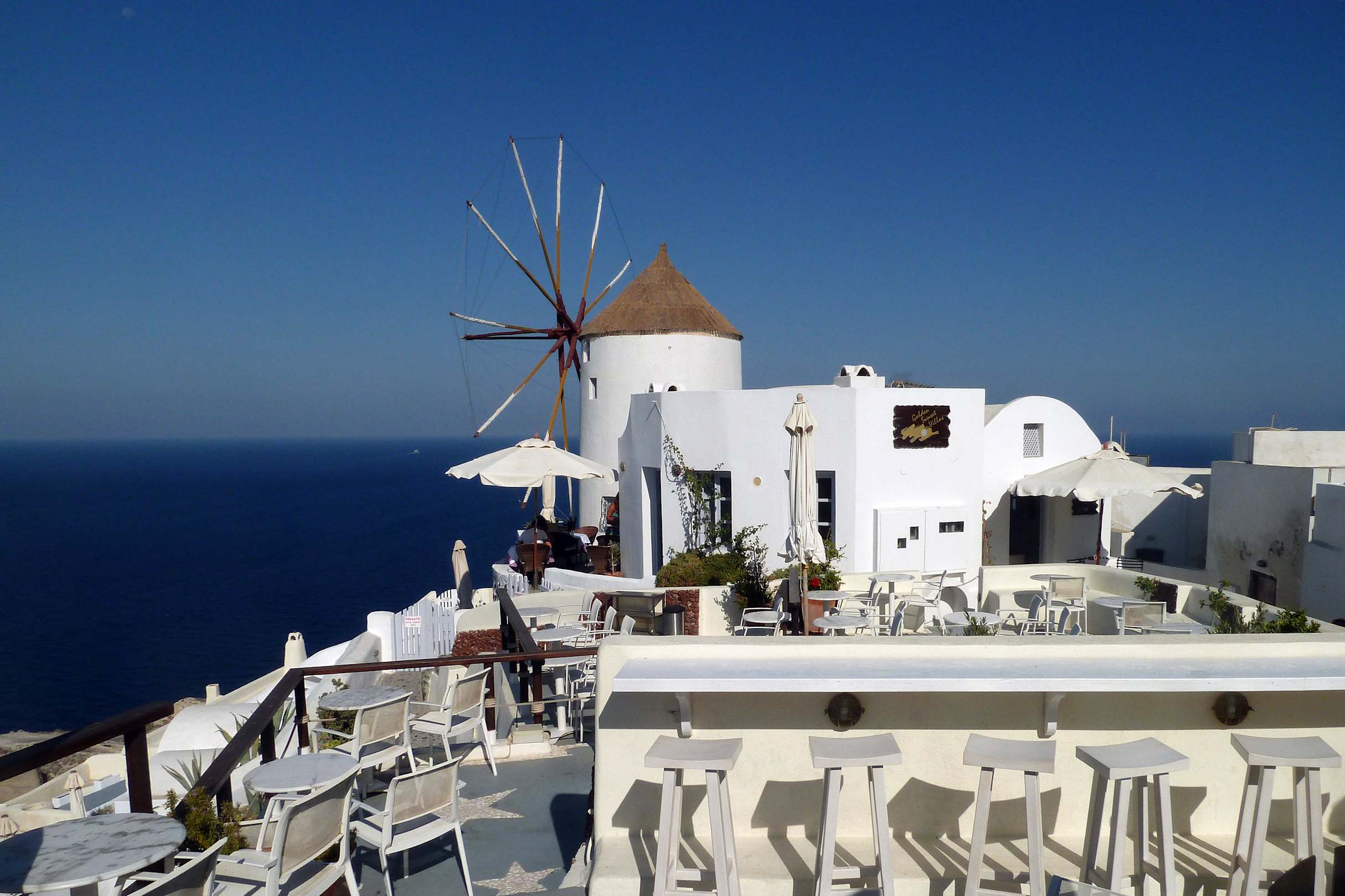 Oía, die Windmühle am Kraterrand