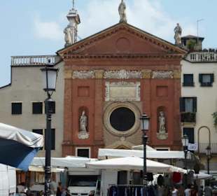 Der Geschichte nach soll die Kirche an der Piazza dei Signori im 5. Jahrhundert von Siedlern aus Padua gestiftet worden sein, die auf den Inseln Rivoalto und Dorsoduro Siedlungen gründeten, die heute zu Venedig gehören. Zweifelsfrei belegt ist die Existenz der Kirche im Jahr 1190, aus hier in offiziellen Dokumenten eine Kirchengemeinde erwähnt wurde. Die Fassade der Kirche enthält Elemente aus späteren Jahrhunderten und drängt sich zwischen Wohn- und Geschäftsgebäude, die an dieser Stelle im Zentrum der Stadt eng beieinanderstehen.