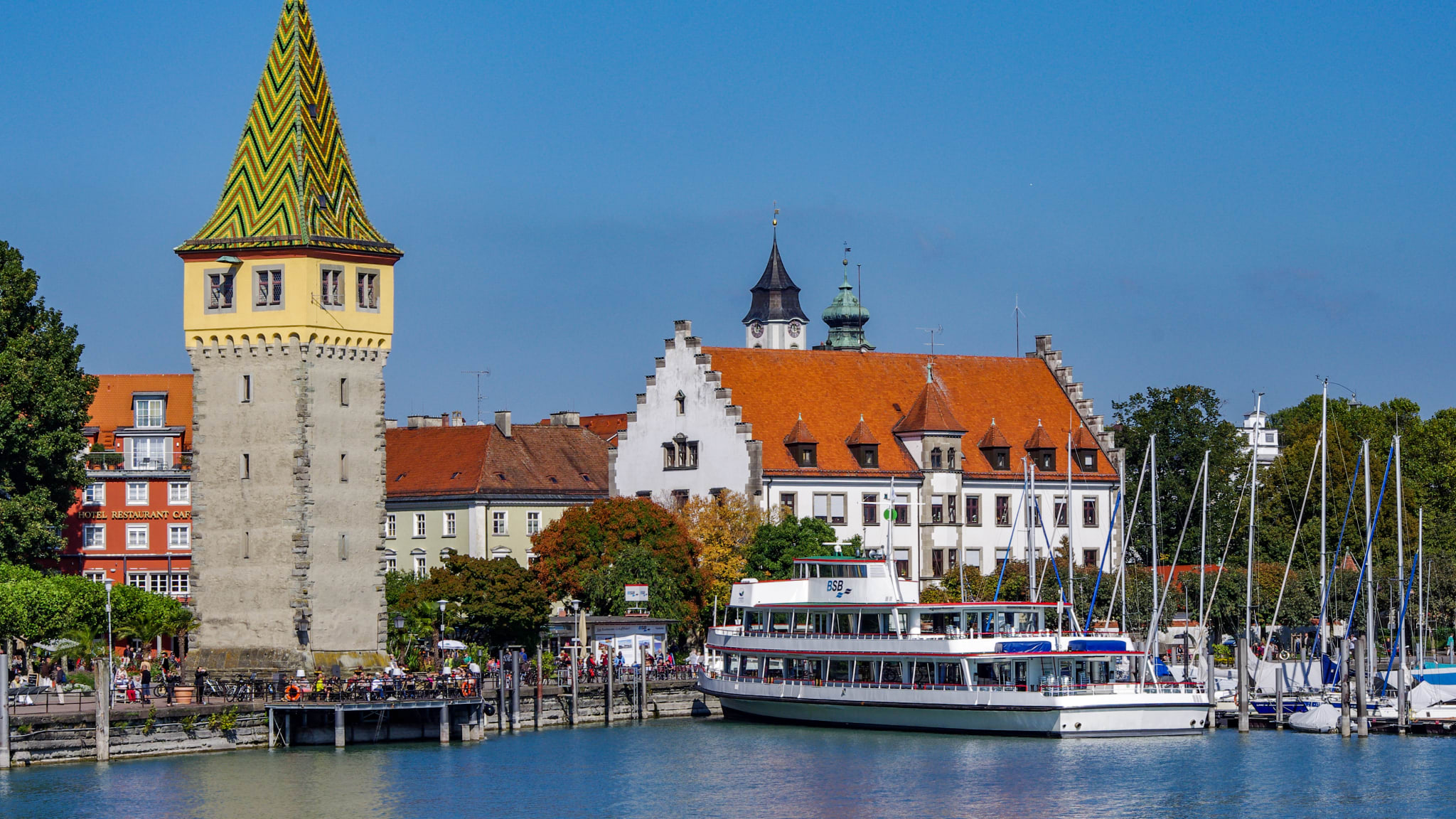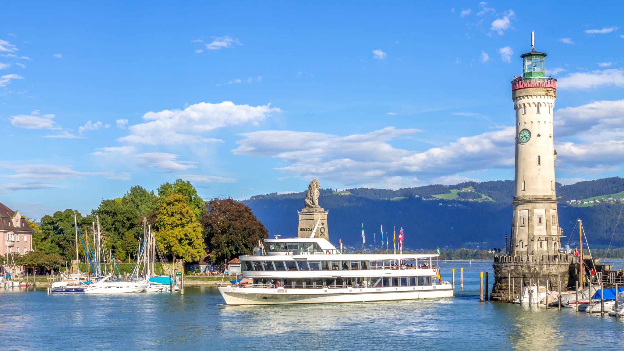 Lindau ist eine Stadt im bayrischen Schwaben und liegt direkt am Bodensee. Österreich und die Schweiz befinden sich in direkter Nachbarschaft und ein Blick über den See genügt um deren wunderschöne bergige Landschaft zu bewundern. Die Hafeneinfahrt ist mit der sechs Meter hohen Löwenstatue und dem neuen Lindauer Leuchtturm das Wahrzeichen der Stadt. Der efeuumwundene Diebsturm mit seinen Ecktürmchen ist ebenfalls einen Besuch wert.