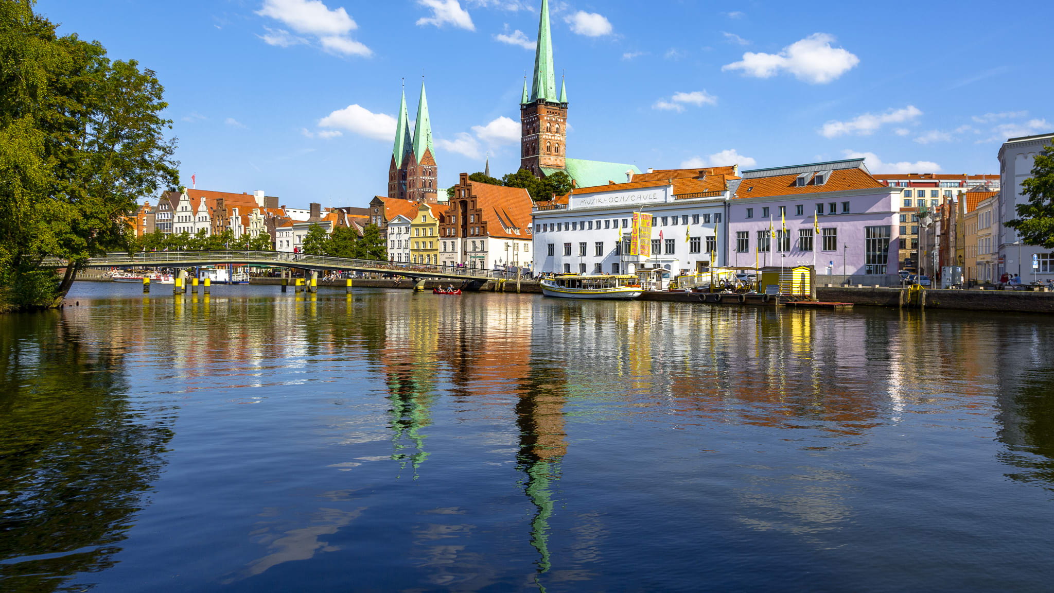 Fahr mit dem Schiff die Trave hinab bis Travemünde – so erlebst Du den Bogen von hanseatischer Altstadt bis zur offenen Ostsee am eindrucksvollsten.