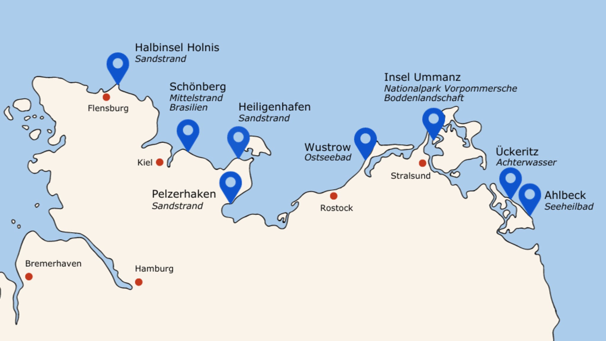 Entlang ihrer fast 1.000 Kilometer bietet die deutsche Ostseeküste allein am Festland etliche Spots, die die perfekten Bedingungen zum Kitesurfen mitbringen. Stabile Windverhältnisse, einstiegsgeeignete Stehreviere und Sommertage, die dem Meerwasser schon mal Karibik-Feeling verleihen: Zwischen Flensburger Förde, Schaproder Bodden und Usedom müssen KitesurferInnen nicht lange nach geeigneten Revieren suchen. Nachfolgend findest Du eine Auswahl der schönsten Kitesurf-Spots an der Ostsee, die mit ihren Wind- und Wasserbedingungen, aber auch mit ihrer Infrastruktur überzeugen.
